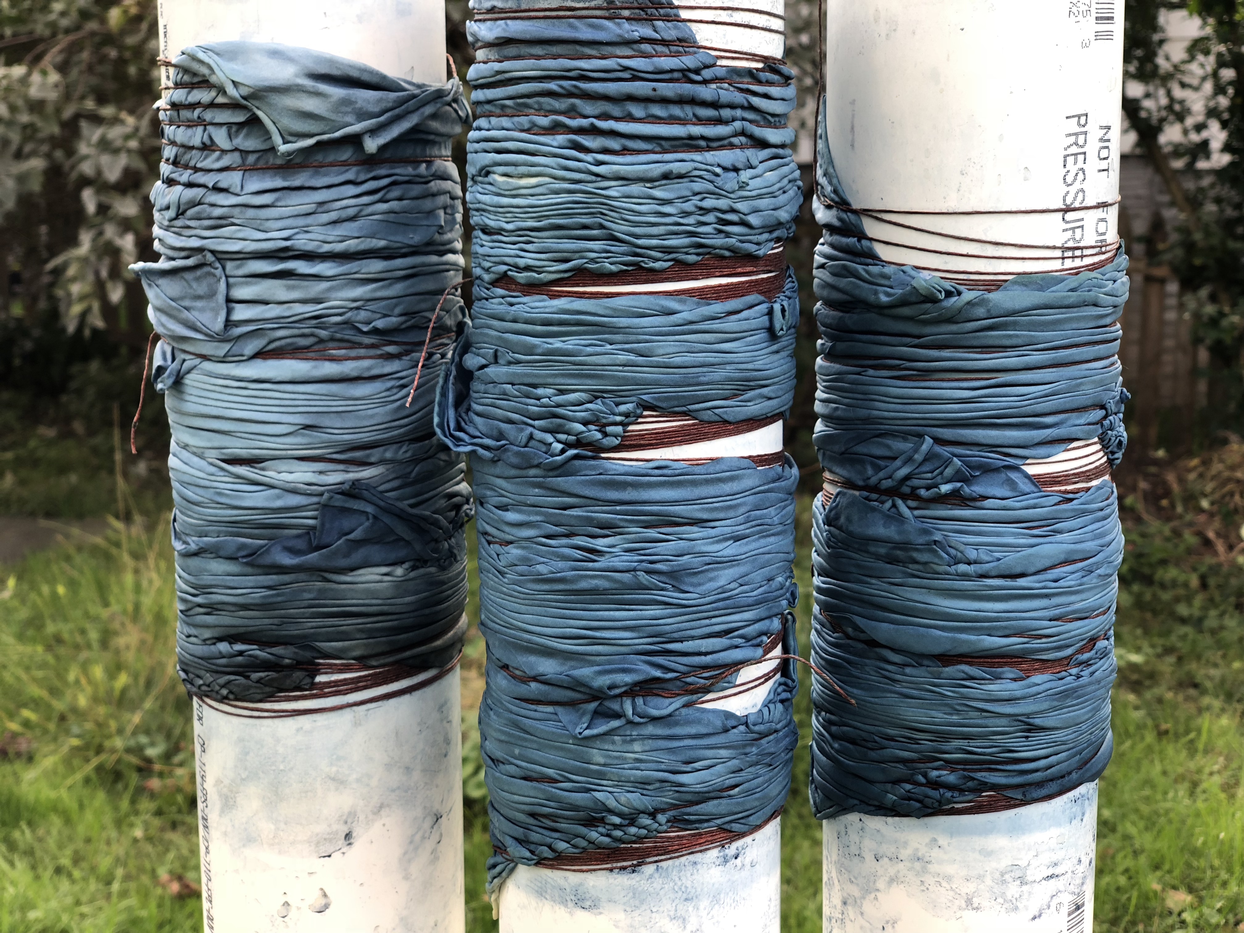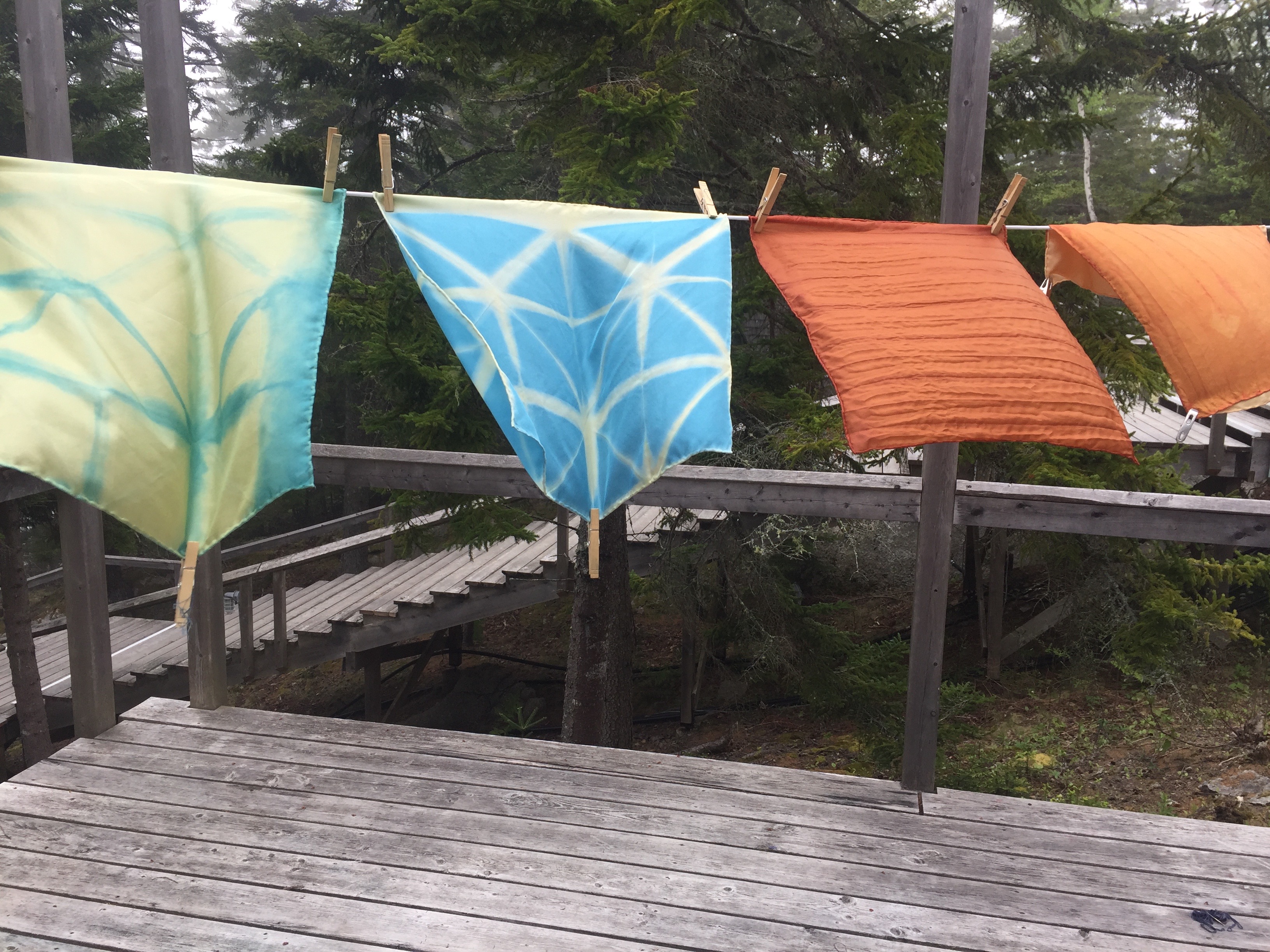Documentation of natural dyeing processes for various projects: shibori, hapazome, bundle dyeing, fermentation of lichen dyes, and use of found tannins, plants and water sources that are site based.